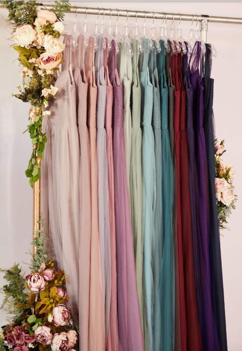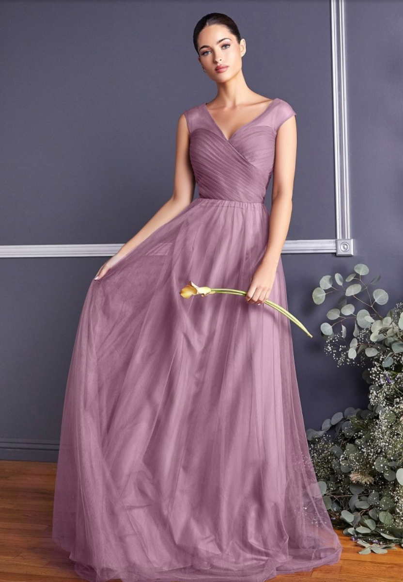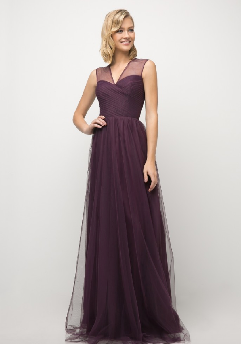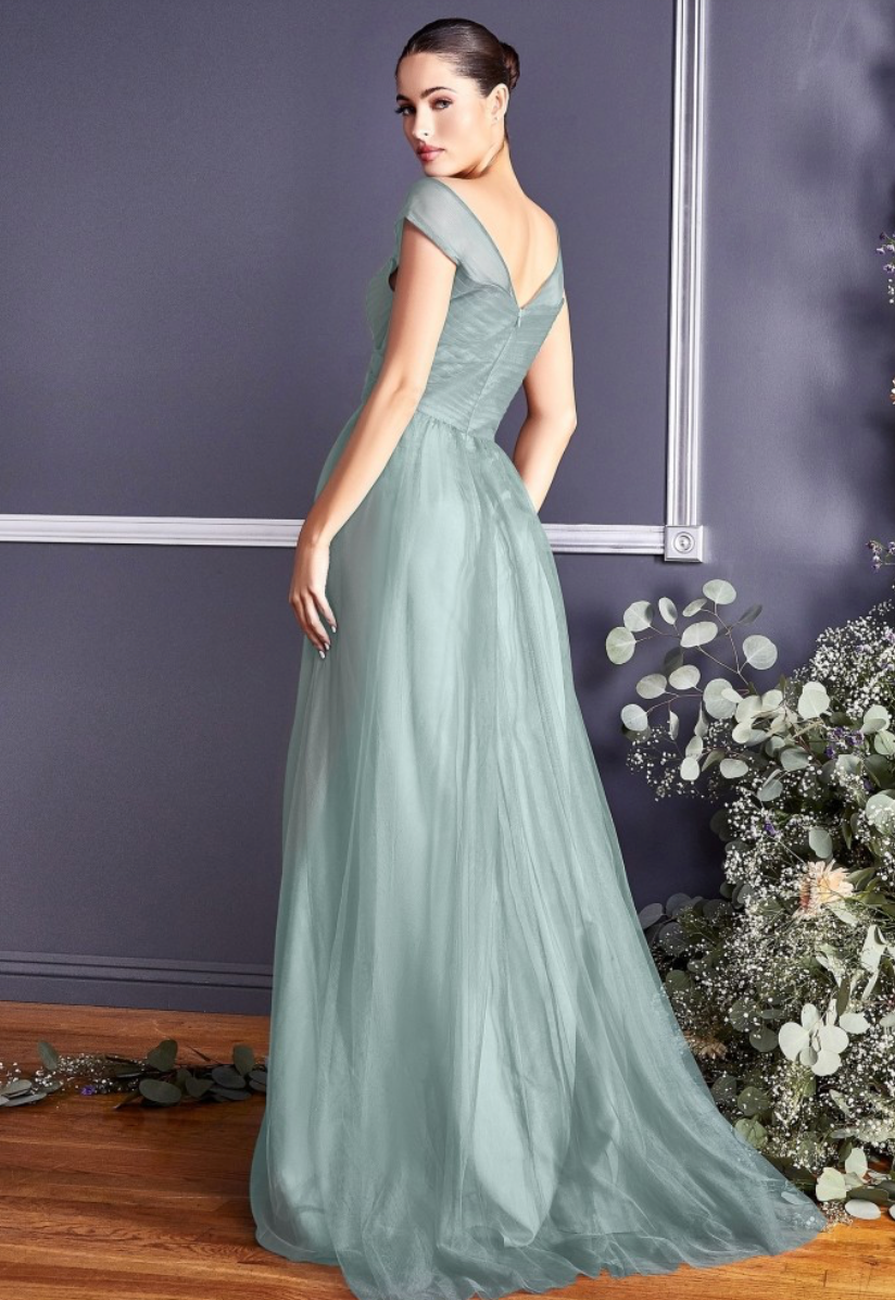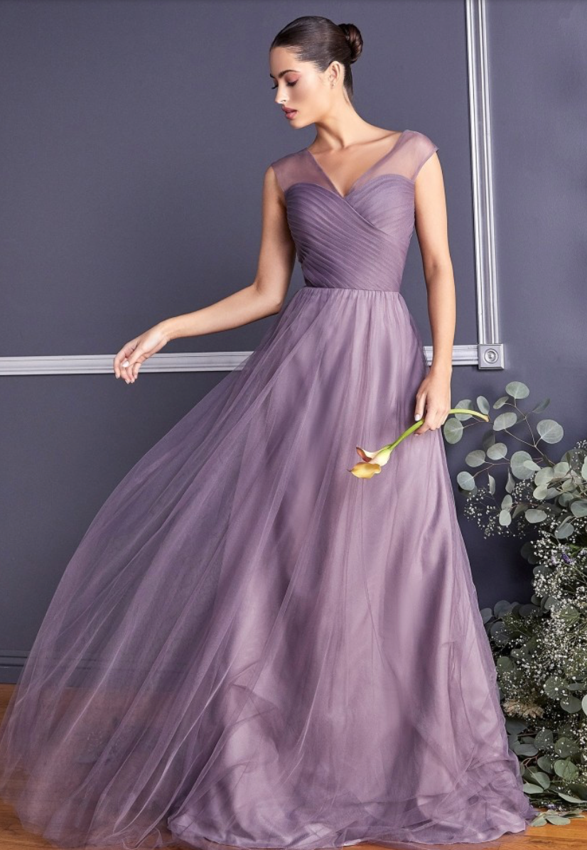 Vestido en Linea A, en tela de tul con falda plisada , hombros con opción de usar caídos.